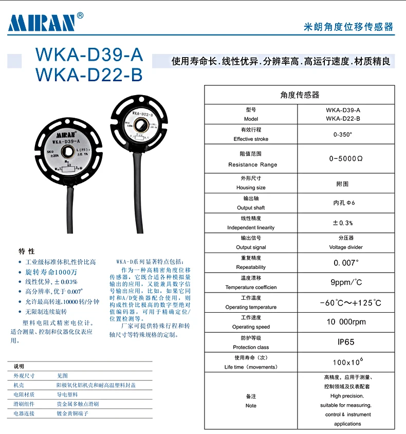 Miran датчик положения угла WKA Высокоточный центральный вал потенциометра