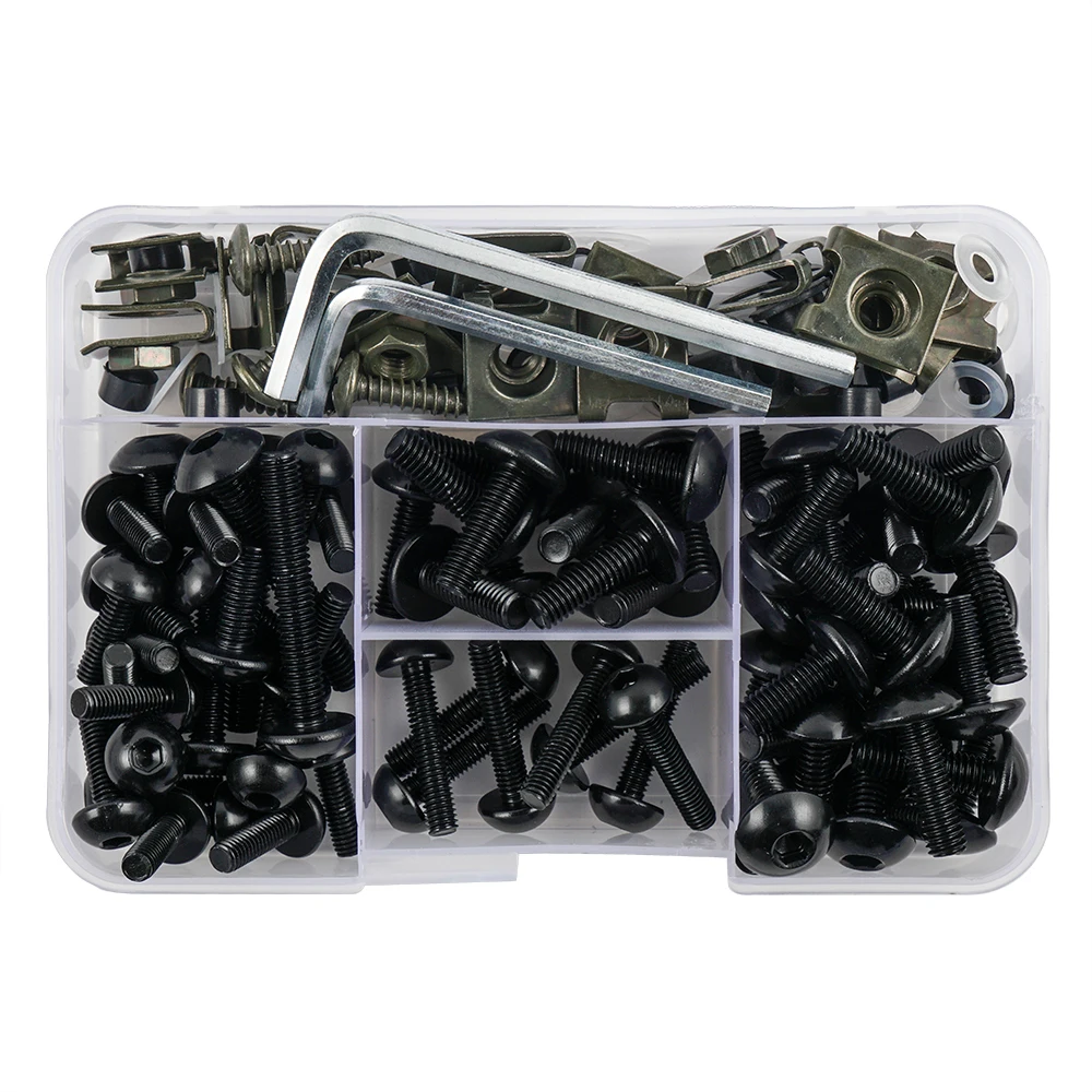 Разработанный, рассматривая потребности механиков и гонщиков в дилерском центре и на гоночной трассе, этот комплект имеет 155 единиц метрического оборудования премиум-класса в заводском стиле, включая болты на кнопках с нейлоновыми шайбами, крепежи для ветрового стекла и многое другое.