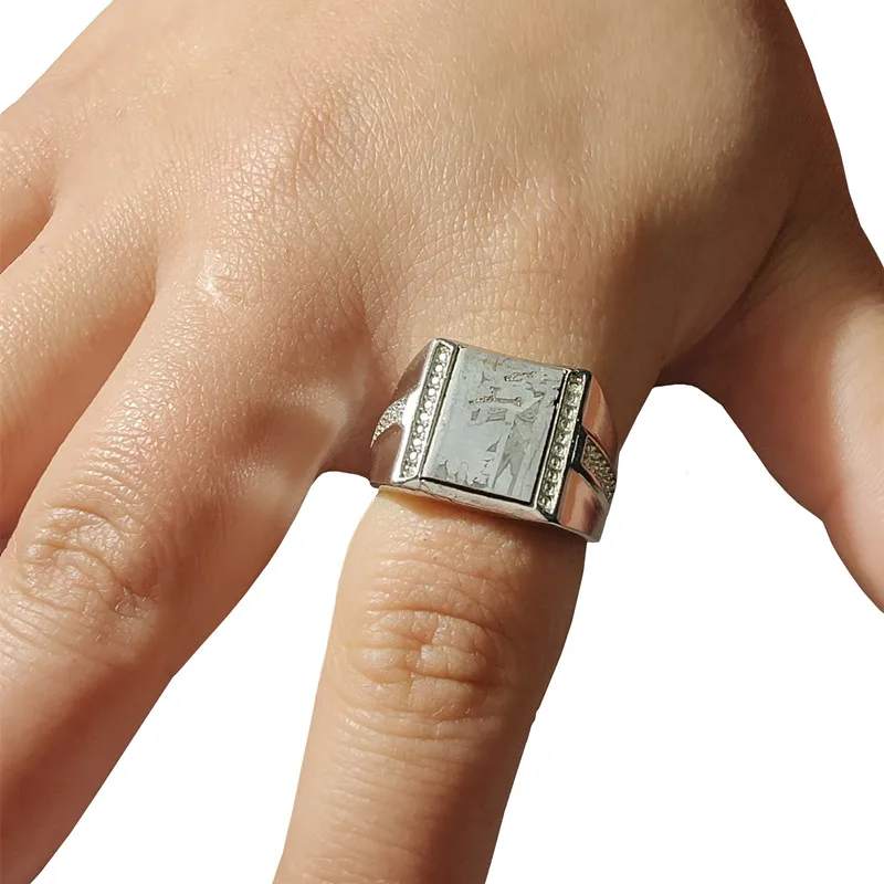 Инкрустированное железным метеоритом кольцо (метеоритное кольцо), инкрустированное метеоритным железом, падающим с неба, можно назвать маленькой Вселенной на кончиках пальцев.
