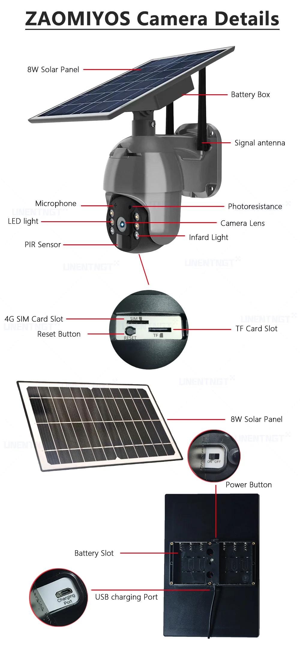*There are 2 different versions of the surveillance camera, one is 4G sim card version, can only support 4G sim card connection