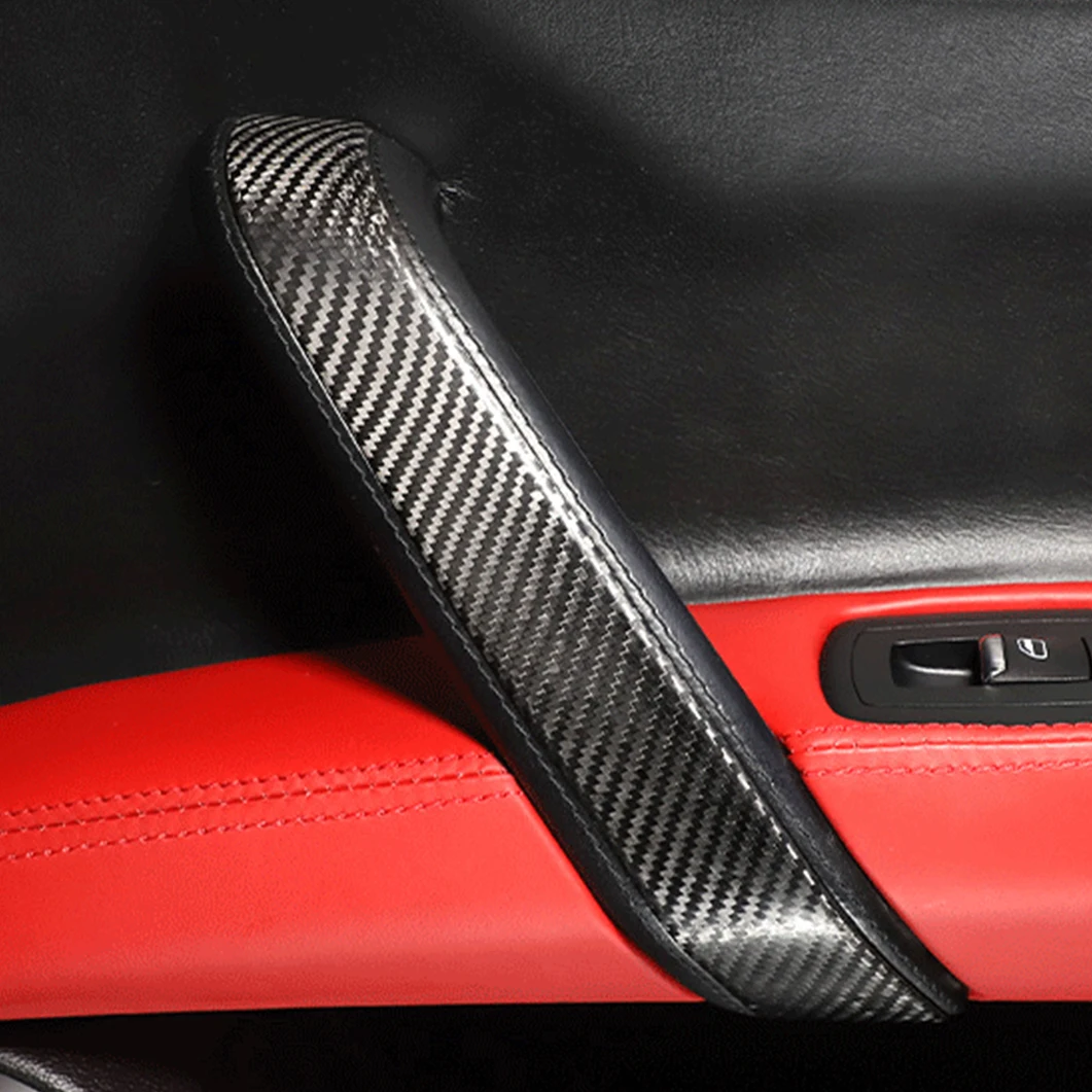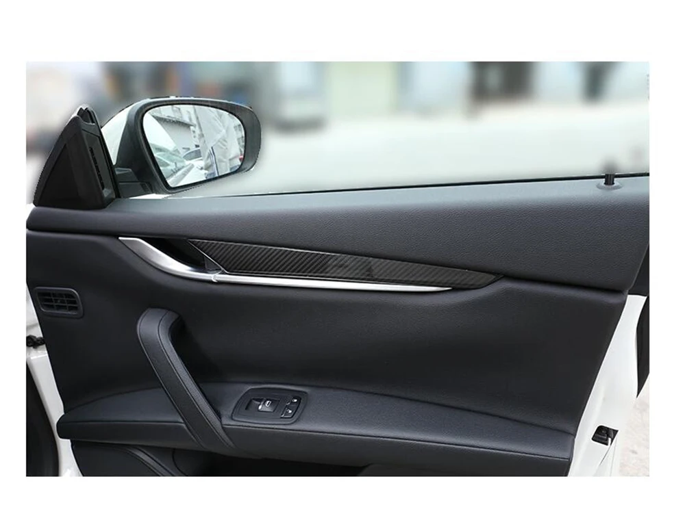 2PCS Car Real Dry Carbon Fiber Central Door Window B-Pillars Trim Cover Decorative Sticker Panel For Maserati Ghibli 2014-2021