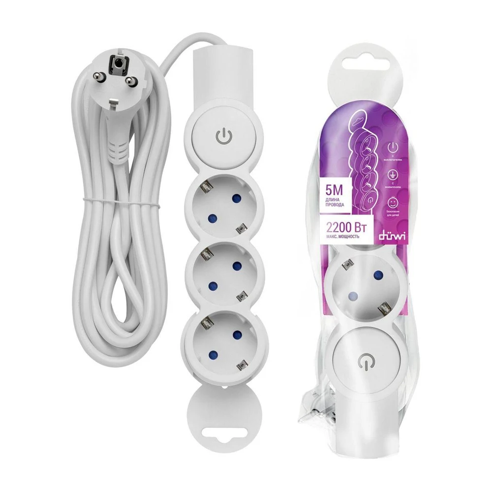 Удлинитель Duwi 32013 7 4 гнезда 5 м 220-240 В IP20 с заземлением пластиковый белый |