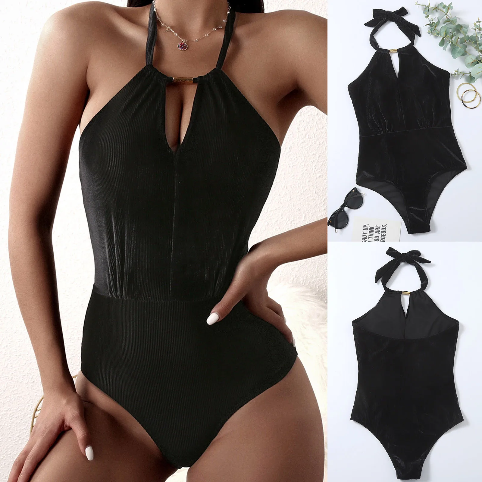 Женский новый модный бархатный купальник бикини с металлической пряжкой и открытой спиной