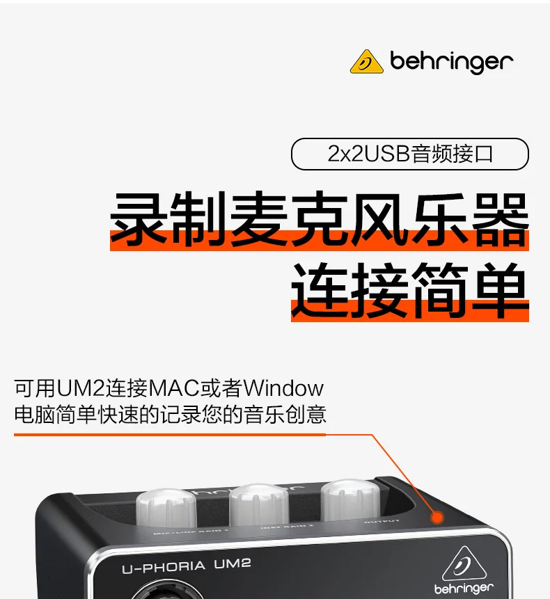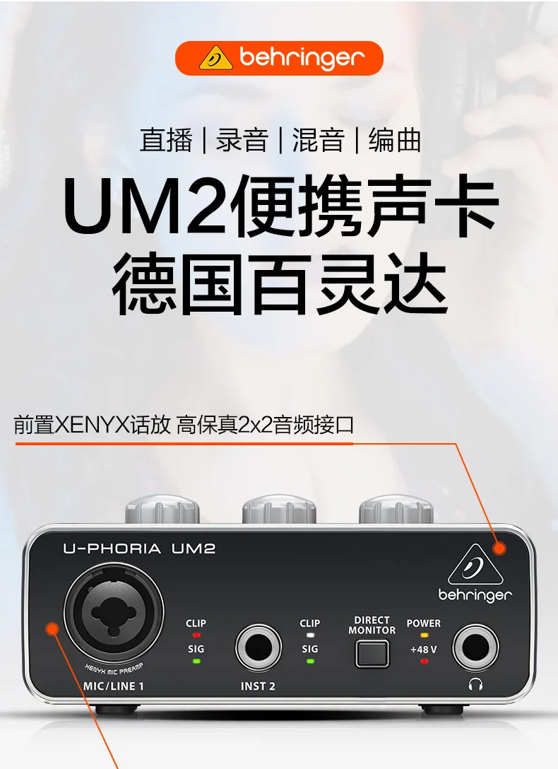 Behringer U-PHORIA UMC22-аудиоинтерфейс 2x2 USB с микрофоном MIDAS.