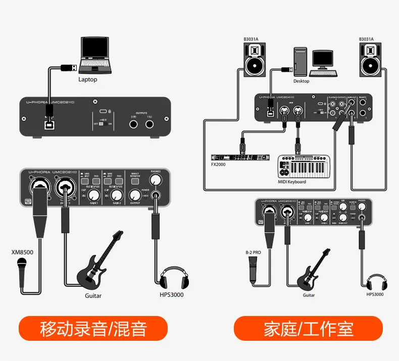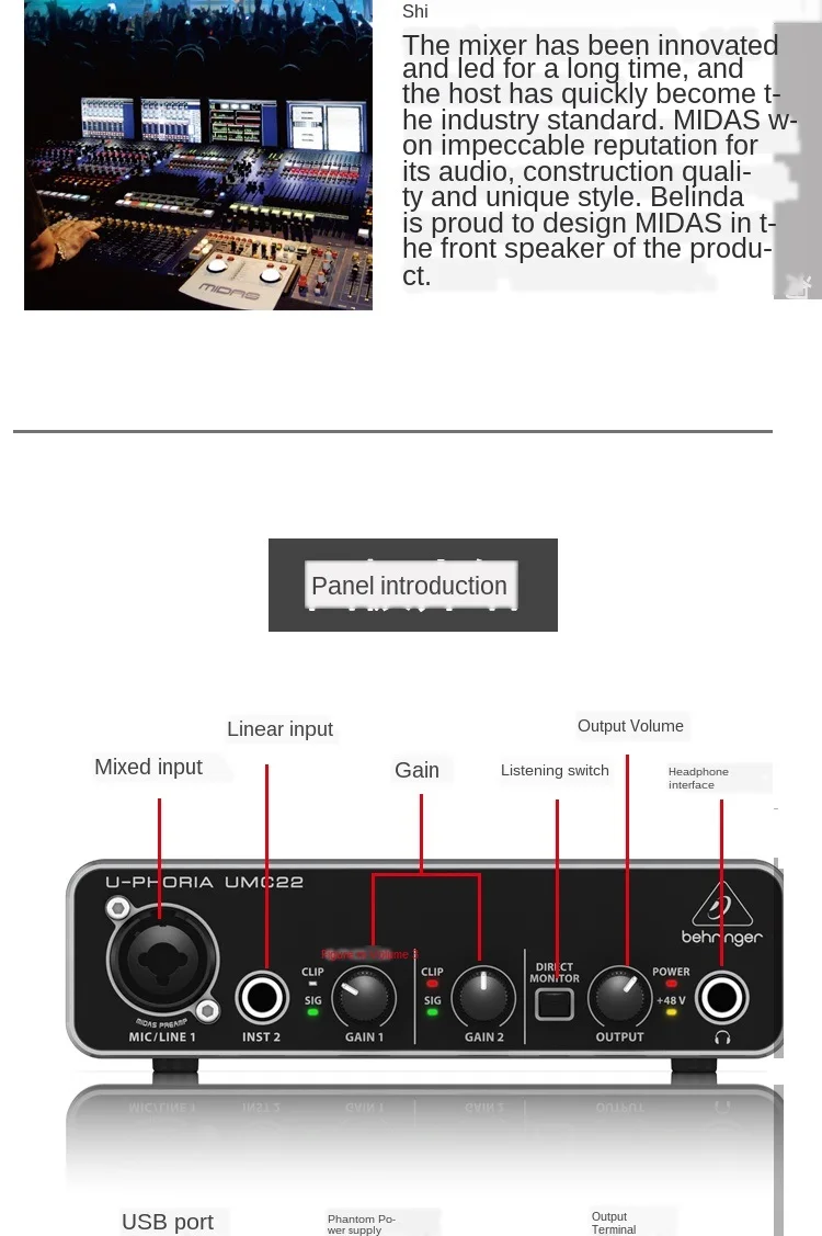 Известный своим мастерством в дизайне цифровых консолей, компания Behringer sister MIDAS разработала первоклассные преампы мирового класса для интерфейсов UMC22, UMC204 и UMC202-и благодаря доступному фантомному питанию + 48 В, вы даже можете использовать профессиональные студийные конденсаторные микрофоны для создания выдающихся треков.