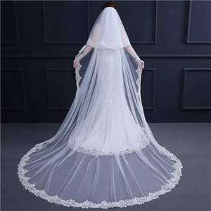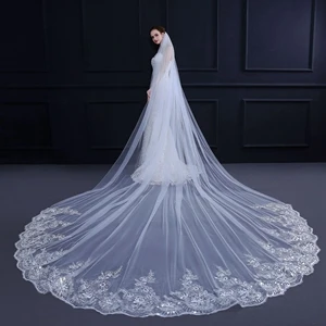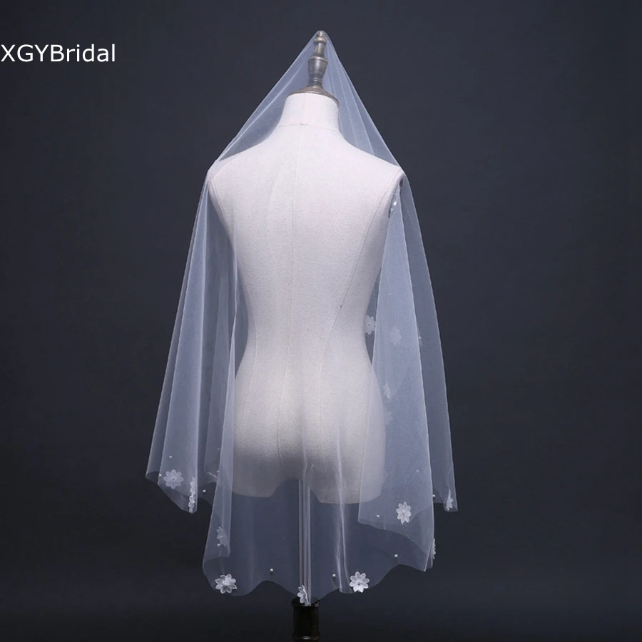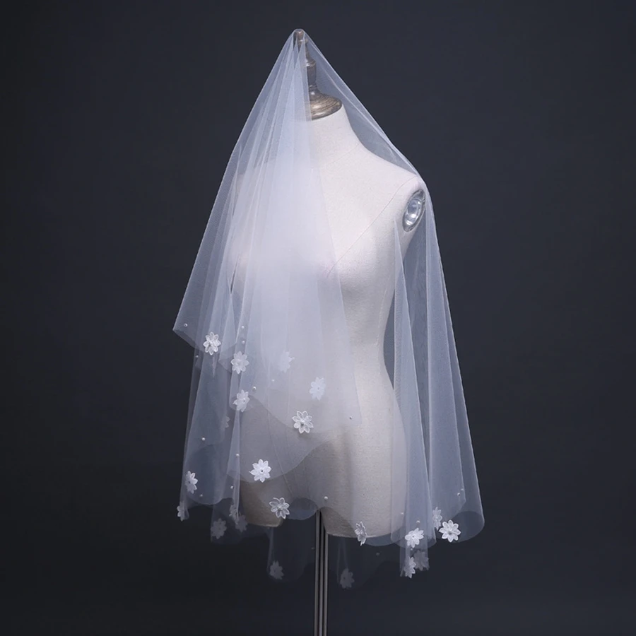 New Arrival One Layer Ivory Bridal Veils Flower Beaded Bride wedding accessories Velos de novia Cheap Wedding veils for bride