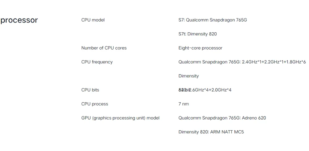 Vivo S7 Основные характеристики: