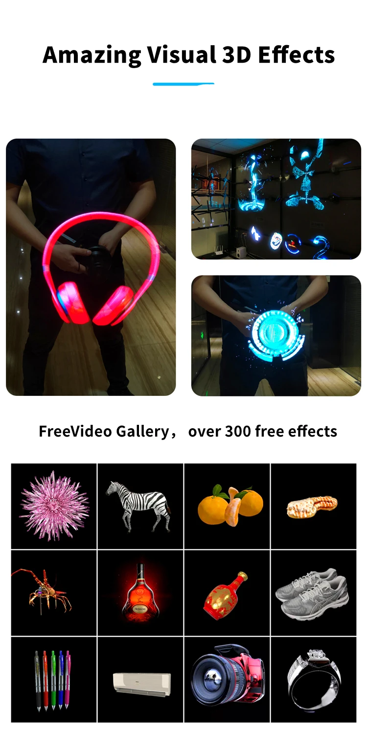 О: вы можете использовать ina shoppingmall, тканевый магазин, ресторан, музей и любые другие места, которые нужно сделать 3D голограмму дисплей.