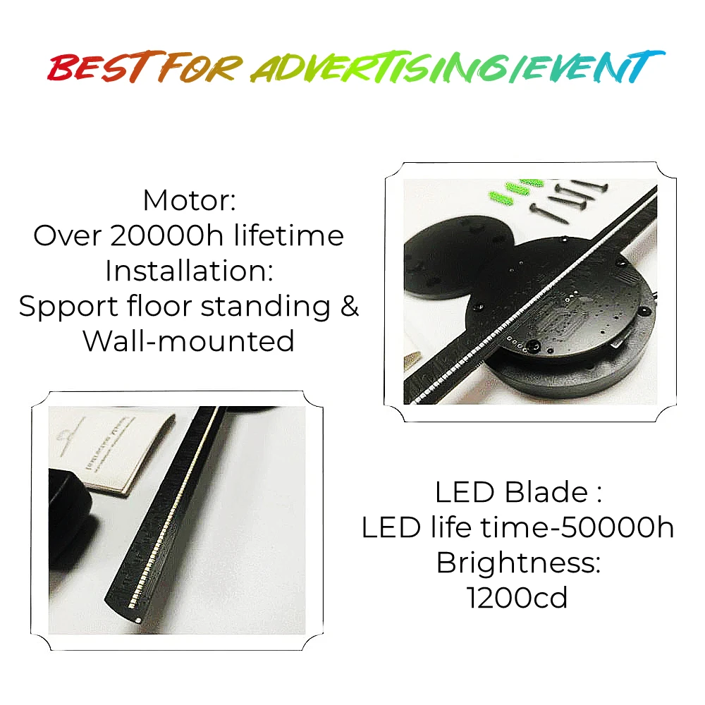 Диспламакс™3D Голограмма дисплей-светодиодный вентилятор, он работает с высокой скоростью в круге, чтобы сформировать динамическое изображение, применяя принцип визуального места человеческого глаза на светильник.