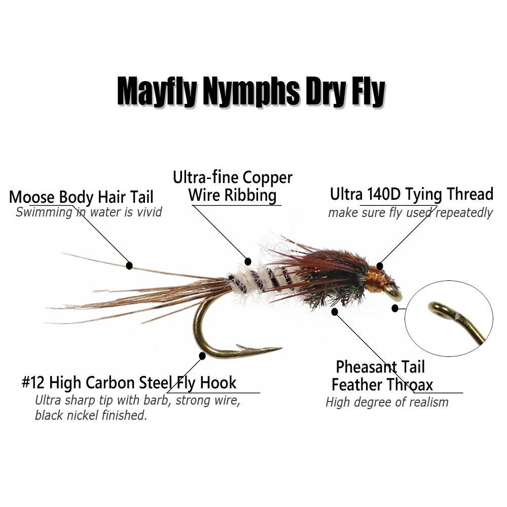 Bimoo 6 шт. #12 перо из хвоста фазана Mayfly Nymphs и Emergers сухие мухи форель бас Рыбалка муха Прикормка искусственные приманки