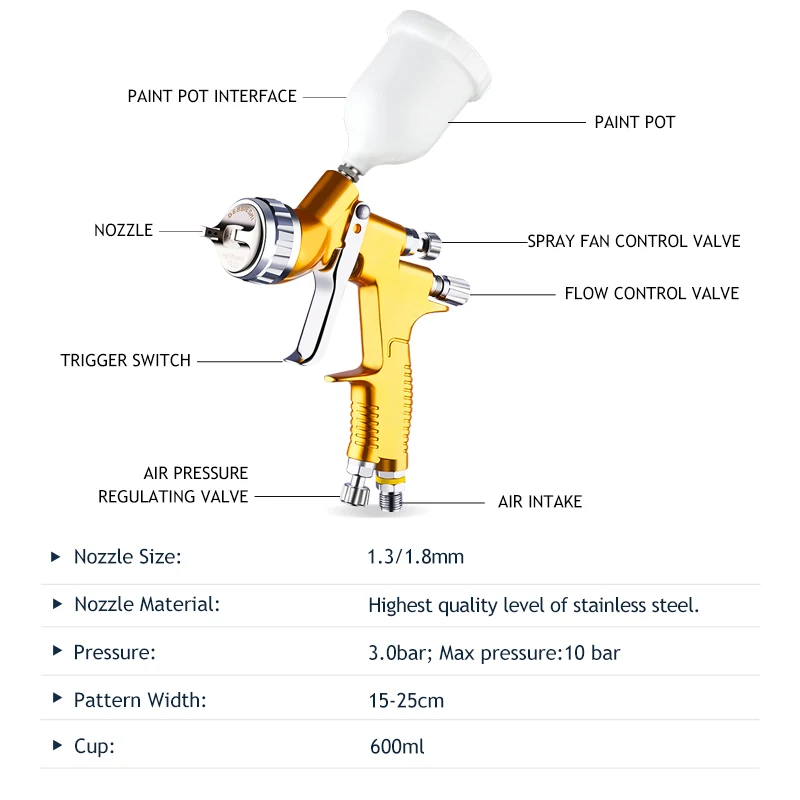 Быстрая доставка-Профессиональный GTI pro Golden Paint ing Gun TE20 1,3 мм/1,8 мм сопло пистолет для распыления краски пистолет на водной основе Воздушный пистолет для краски автомобиля
