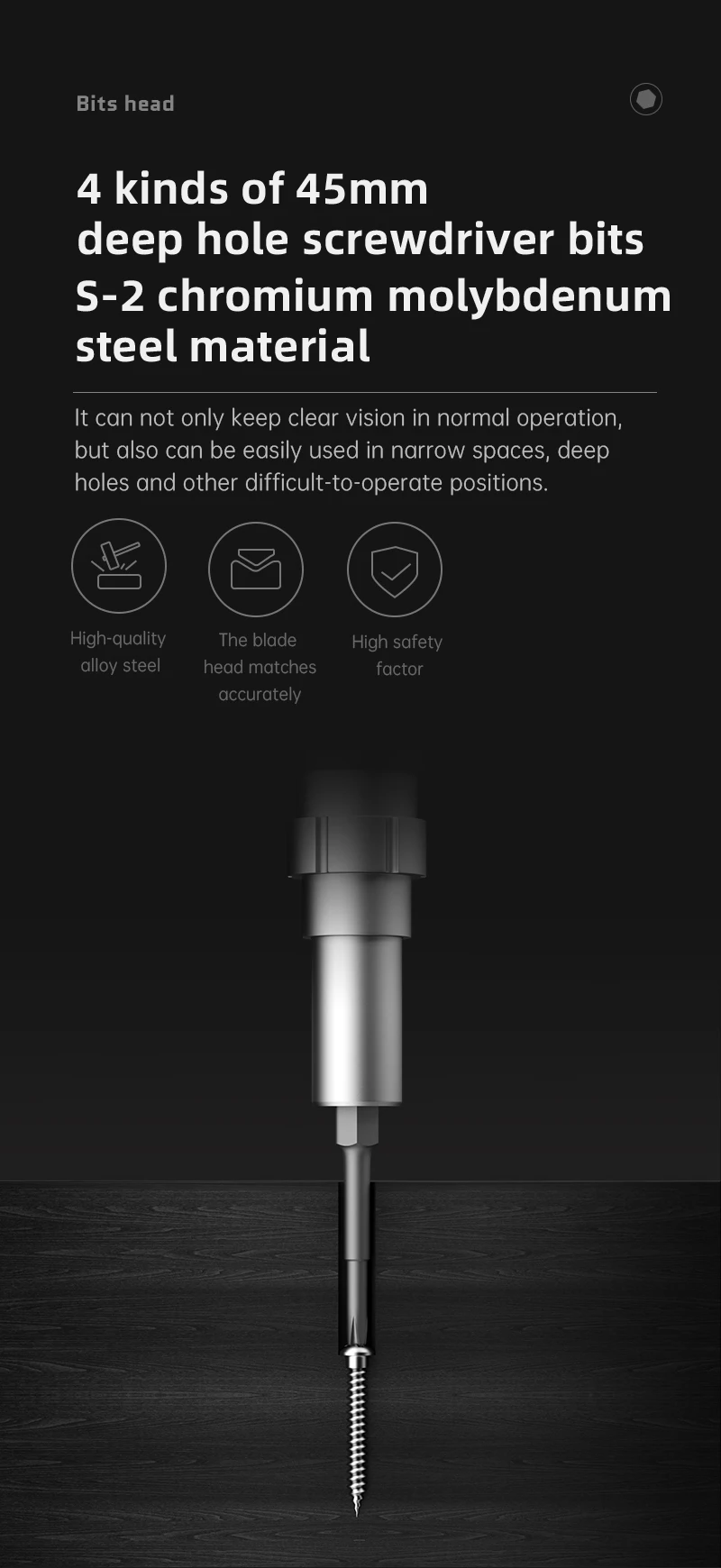 S2 45mm deep hole Screwdriver bits: