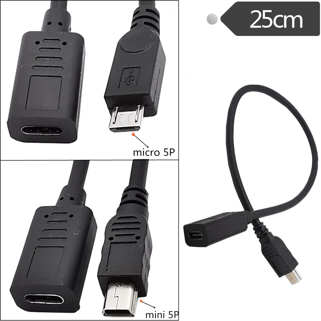 USB 3.1 Тип C Female to micro USB 2,0 micro или передачи данных со штекером для синхронизации Питание кабель Шнур 0,25 м