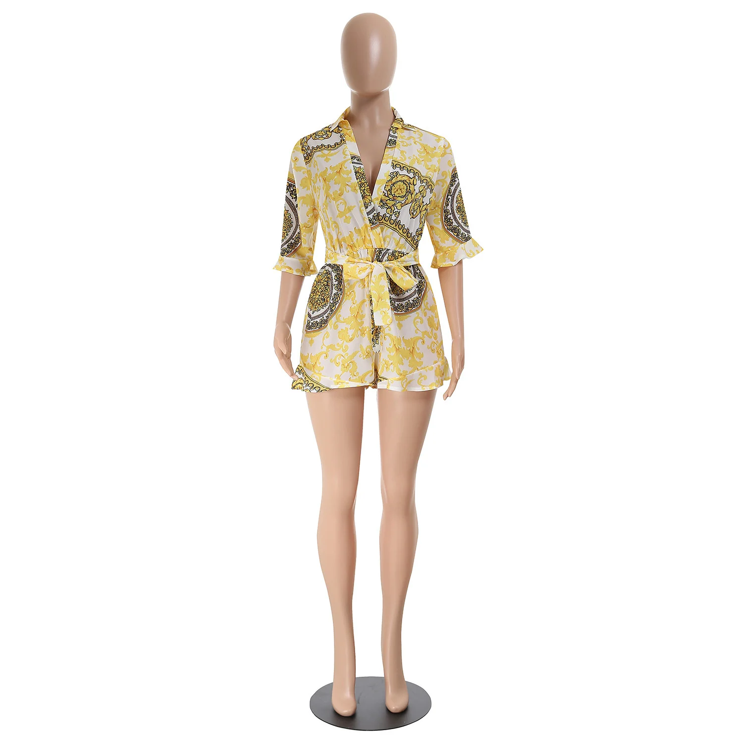 Женские сексуальные широкие брюки с открытыми плечами и принтом повседневные