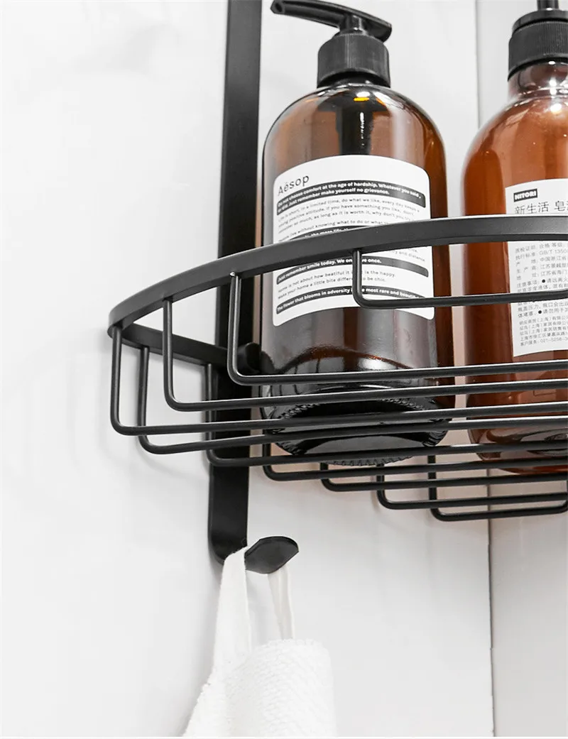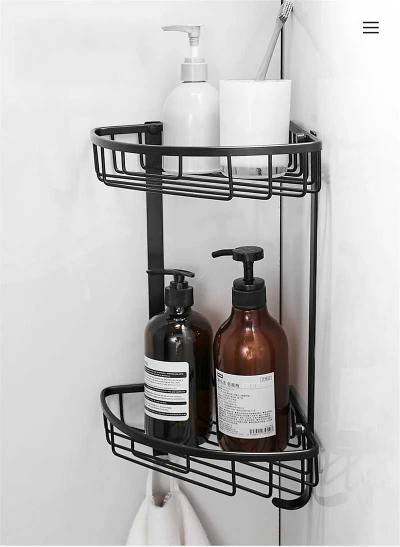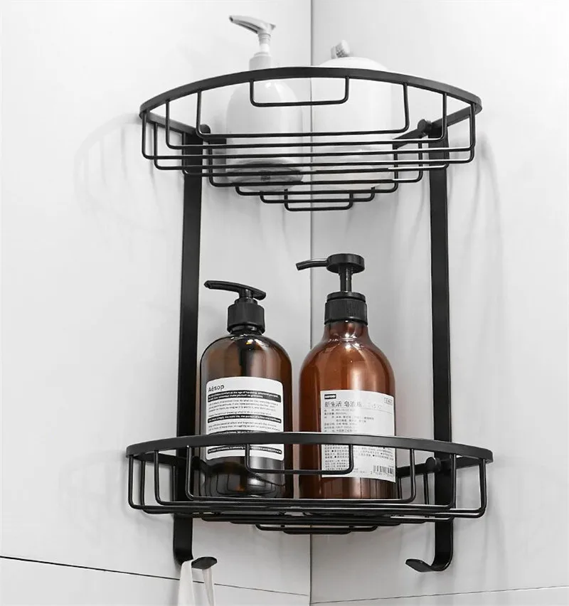 Soild Brass Bathroom Corner Shelf With Hooks Shampoo Shower Rack Storage Holder Wall Mounted Bath Hardware Kitchen Basket Gold