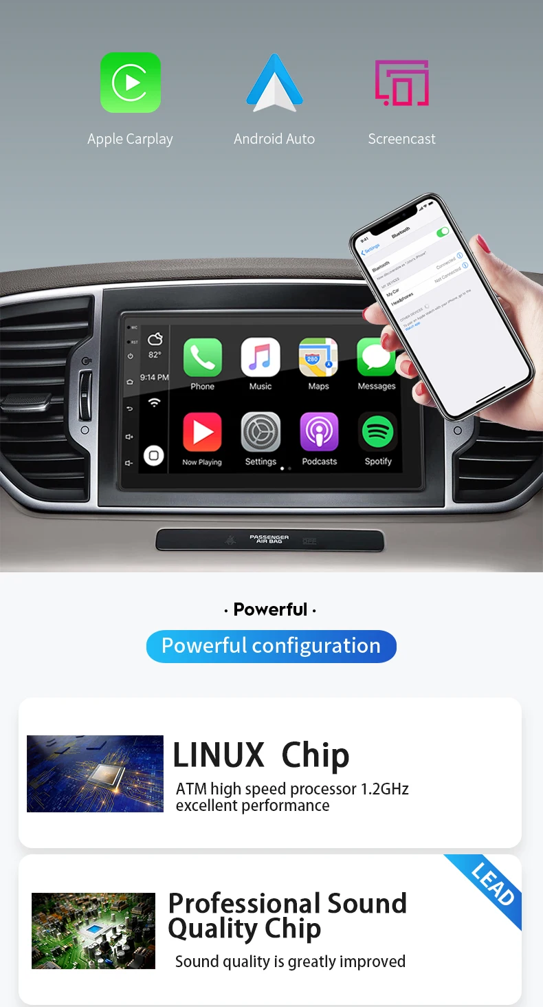TOPHATTER беспроводной Carplay Android Авто Стерео 7 9 10 дюймов мультимедийный плеер радио Универсальный Автомобильный видеоплеер двойной din