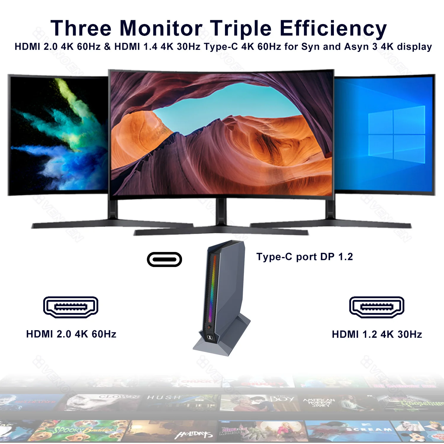 4. Поддержка 2 * HDMI + 1 * Type-C для syn и Asyn 3*4K дисплея.