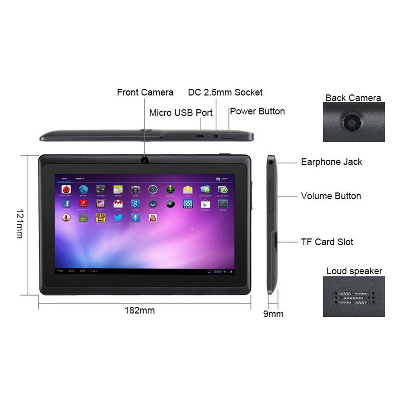 - Этот детский планшет имеет встроенные двойные камеры, 5-точечный емкостный экран, поддерживает тысячи приложений и подходит для Android 4.4.2.