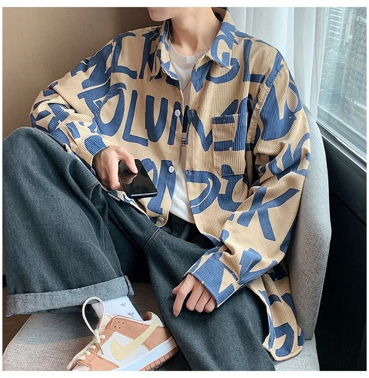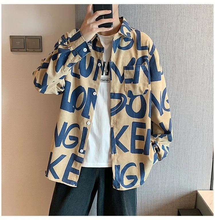 Мужская рубашка с длинным рукавом Privathinker Корейская Вельветовая Повседневная 2022