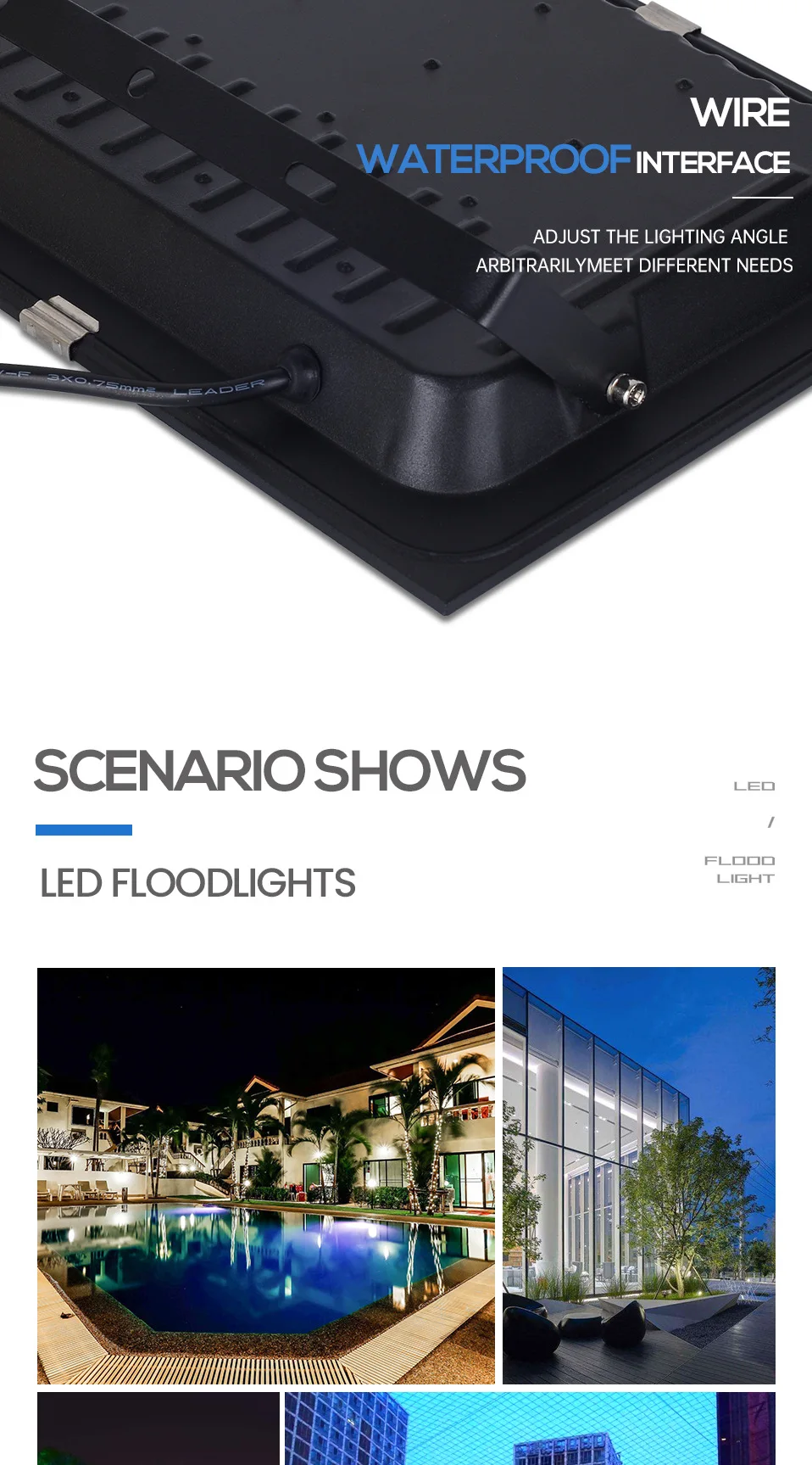 [Супер яркий и энергосберегающий] Светодиодный прожектор светильник с супер яркий светодиодный бусины, может производить до 20000 люмен высокой яркости белого светильник. Он может заменить 1000 Вт традиционные галогенные лампы, экономя 80% расходов на электричество