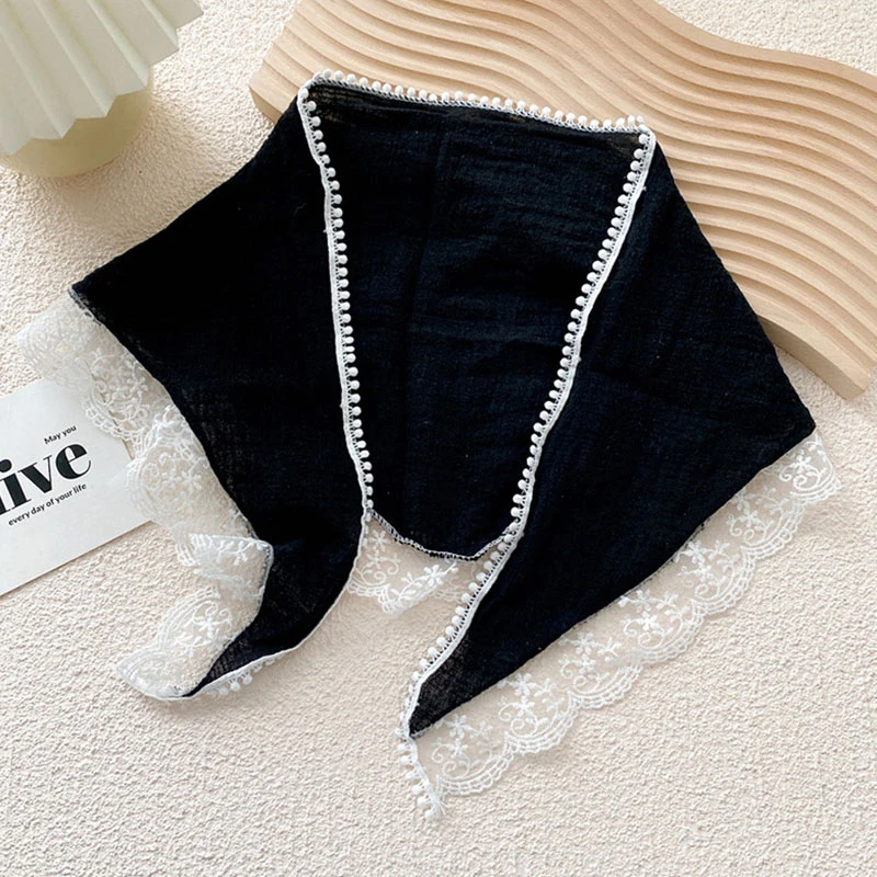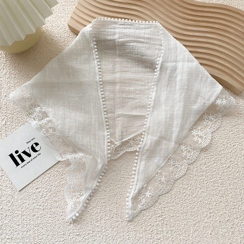 Кружевной хлопковый льняной треугольный шарф, шарфы для шеи, декоративные шарфы, длинные банданы, шаль, однотонный шарф, мягкий шарф для волос