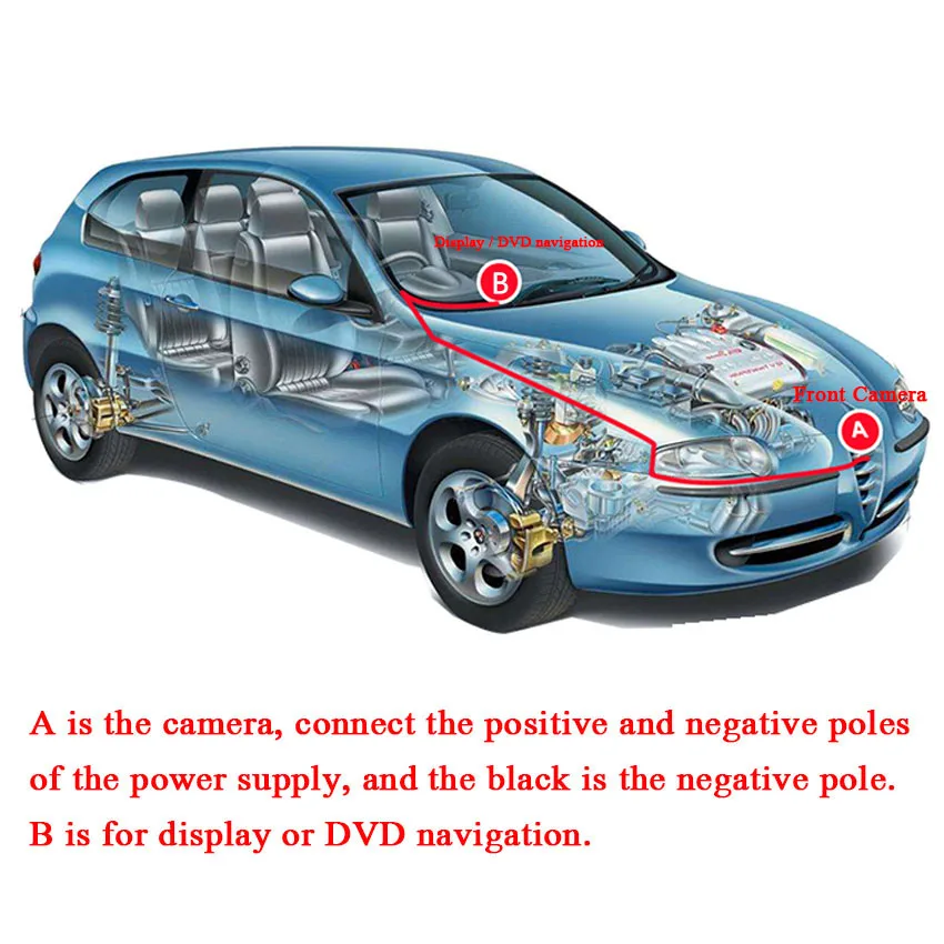A-это камера, подключите положительное и отрицательное поле источника питания, а черный-отрицательный полюс.