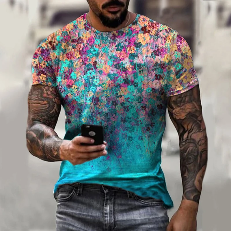 Футболка мужская оверсайз с 3D принтом Повседневная Свободная рубашка круглым