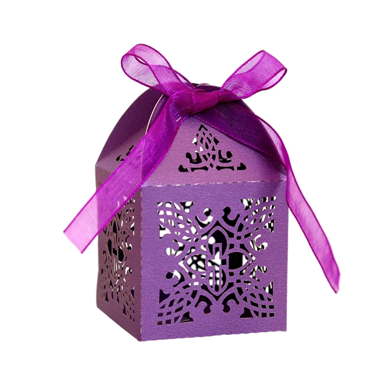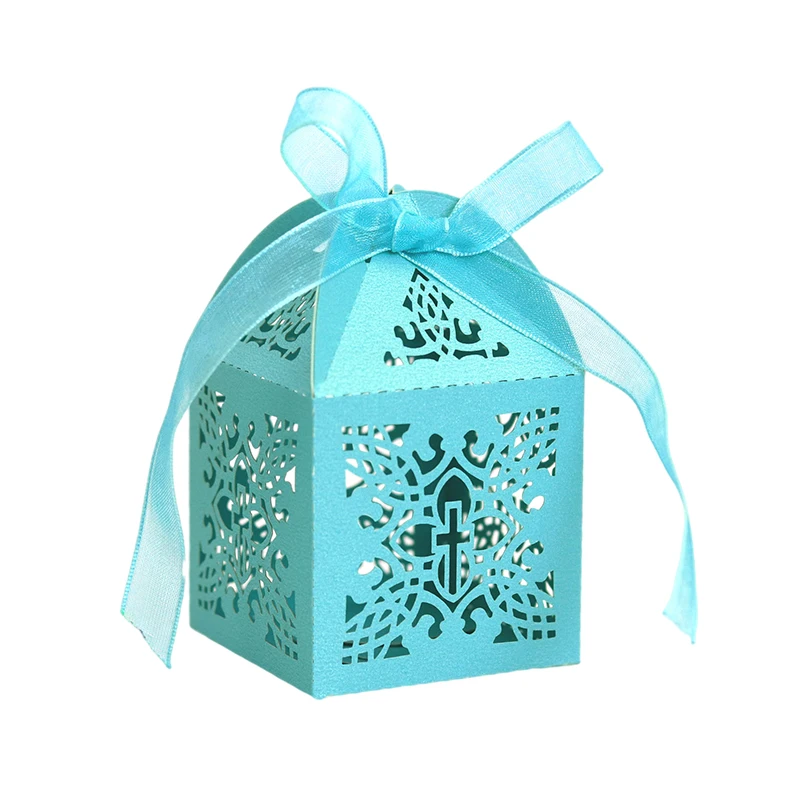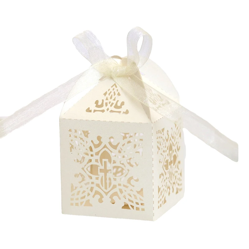 20/30/50 PCS Cross Laser Cut Wedding Favors Gift Box Hollow Religious Candy Boxes With Ribbon Baptism Baby Shower Wedding Party