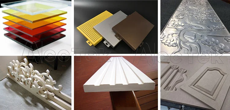 4. Индустрия украшения: акрил, ПВХ, МДФ, искусственный камень, органическое стекло, пластик и мягкие металлы, такие как медь, алюминиевая пластина гравировки и фрезерного процесса.