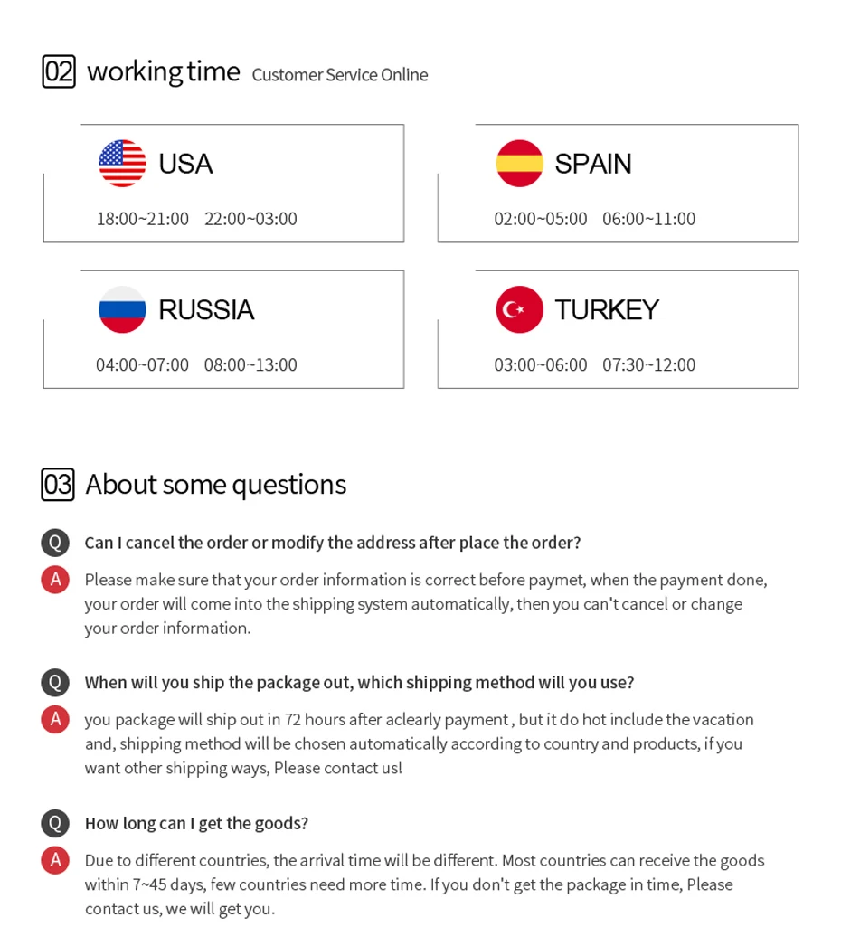 2. Ваше удовлетворение-наша главная забота. Пожалуйста, свяжитесь с нами, чтобы лучше решить любую проблему, прежде чем оставлять нейтральные или негативные отзывы.
