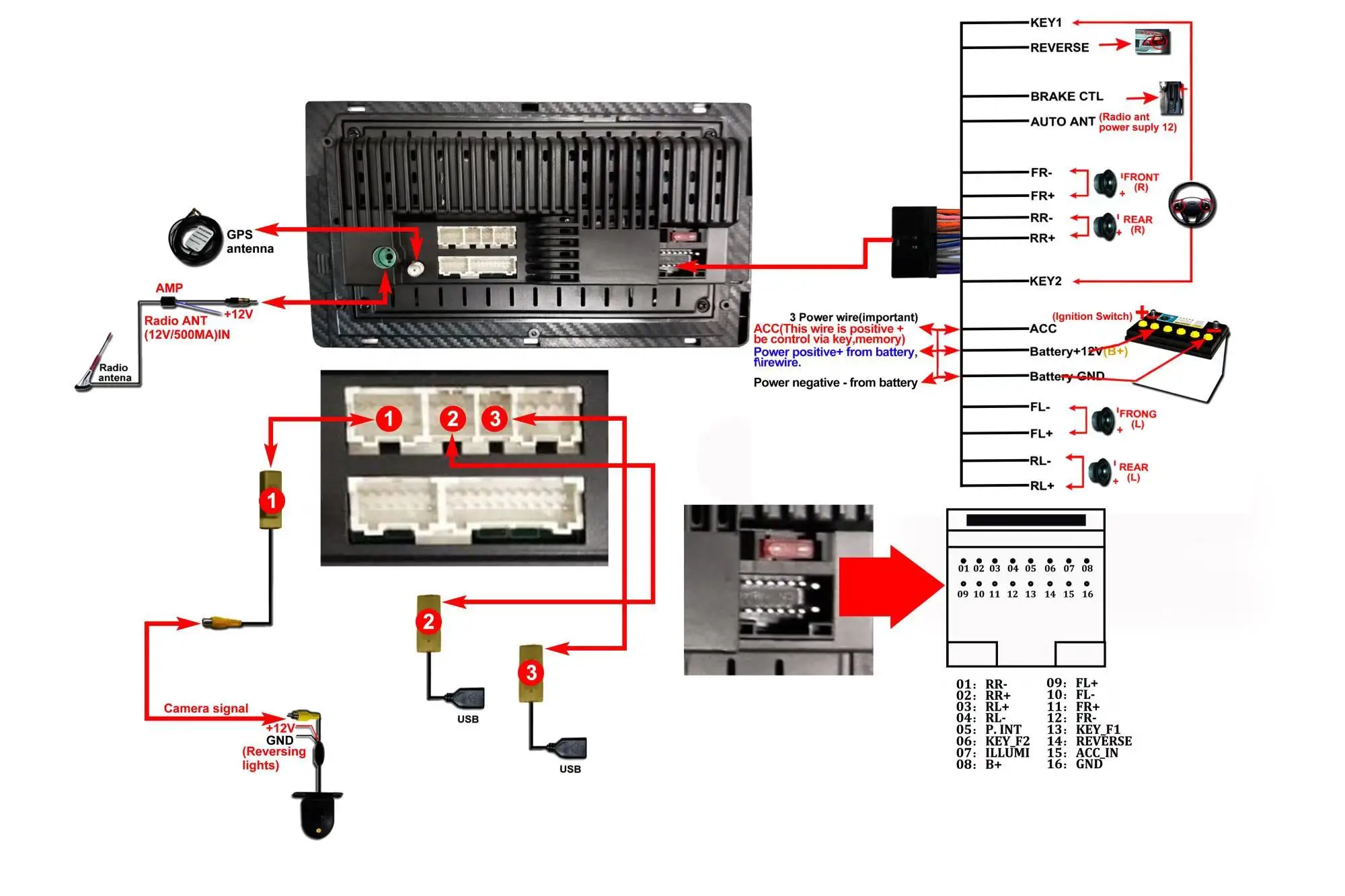 1. Штифт-штифт: Кабель питания Junsun radio' является штифтом для штифта, прост в установке;