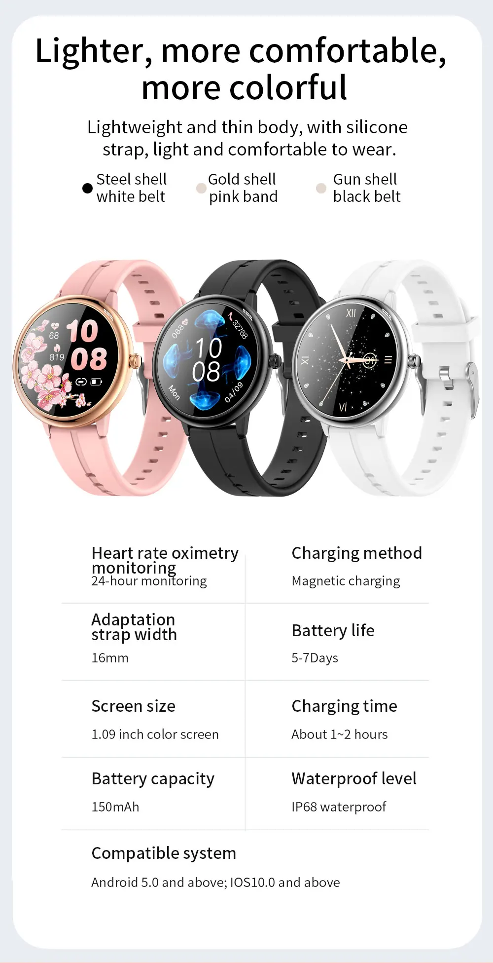 2.Wearable devices monitor human activities through electronic sensors. They are at the level of consumer electronics. It's normal to have certain deviation. The health test results of the watch are for reference only, and can not be compared with medical equipment. When the watch is placed on the surface of the object, there will be heart rate / blood pressure and other test results. It is normal and not a product defect.