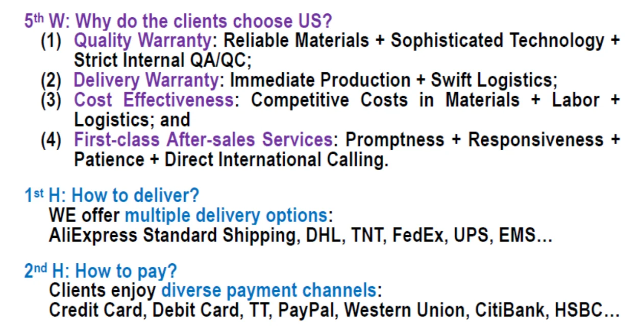 3,1 Время выполнения:Обычно для завершения производства, проверки, посылка и доставка местному курьеру требуется 2-3 (два-три) дня после того, как заказ будет оплачен покупателем (За исключением исключительных обстоятельств, определенных в п. 3,3).