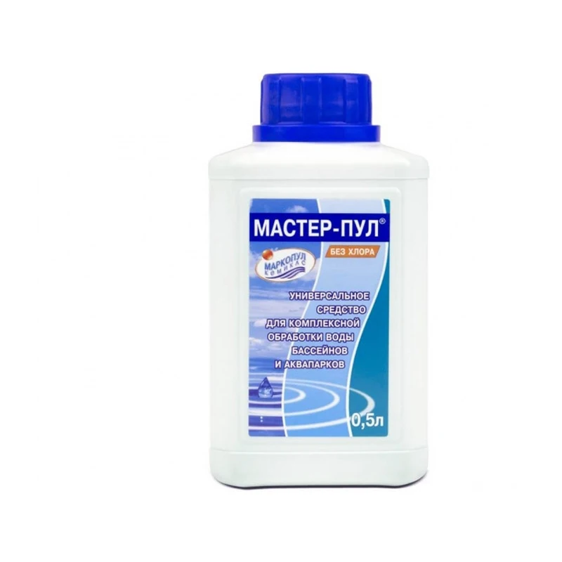 | Комплектация | Жидкое безхлорное средство маркопул-кэмиклс мастер-пул (500 мл.) |