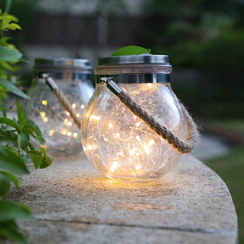 Солнечный свет на открытом воздухе стеклянная банка свет круглый водонепроницаемый светодиодный Солнечный сад Фея лампа для балкона Вечеринка двор Декор звезда ночник