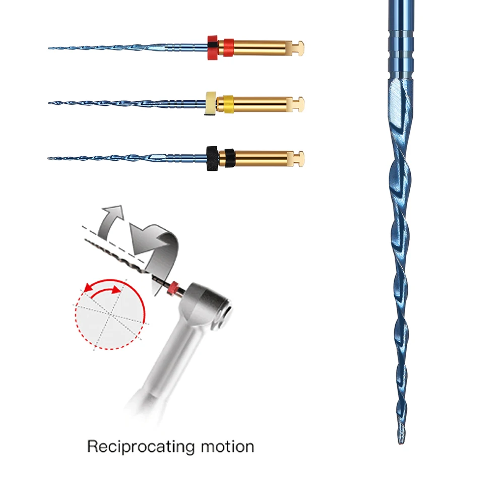 AZDENT 3 Pcs Dental Reciprocating Blue Endodontic Files 21mm Engine Use Niti Rotary Root Canal Heat Activated 25mm