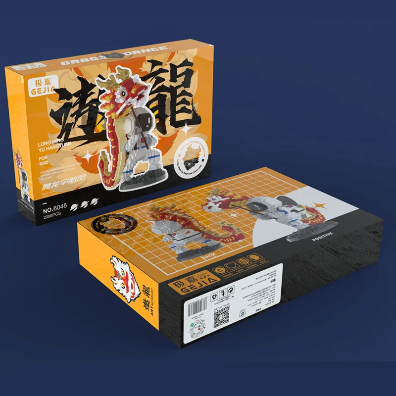 Лев танец астронавт микро строительные блоки Дракон танец космонавт китайская культура космонавт мини кирпичная фигура игрушки для детей Подарки