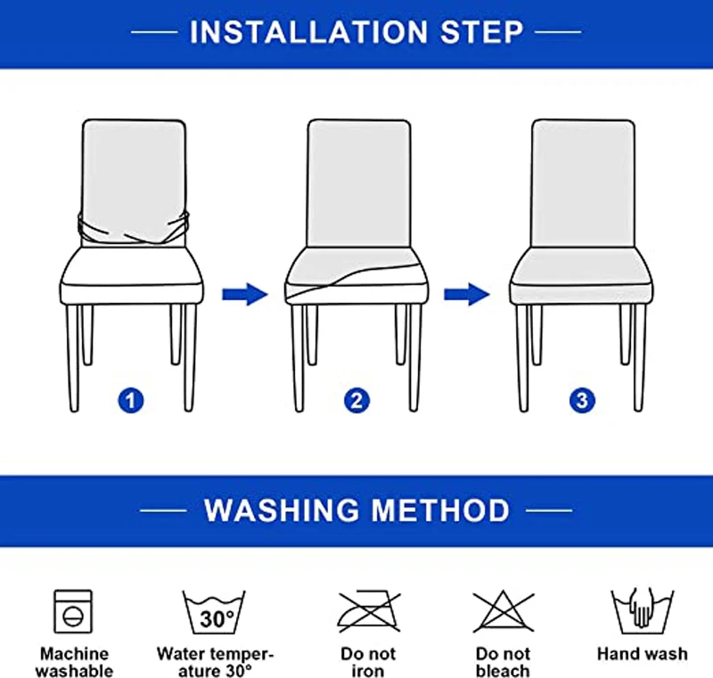 Из-за растягивающейся ткани, используемой в этом покрытии стула, очень легко установить/снять. Наши чехлы для обеденных стульев можно стирать в стиральной машине, их легко чистить и обслуживать.