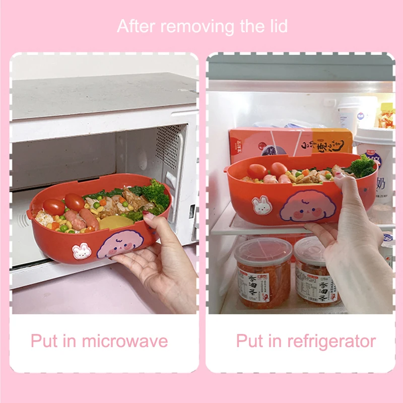 Kawaii Ланч-бокс с отсеками для детей, для взрослых, школьная работа, портативная пластиковая Милая коробка Bento, коробки для пищевых продуктов с микроwavable
