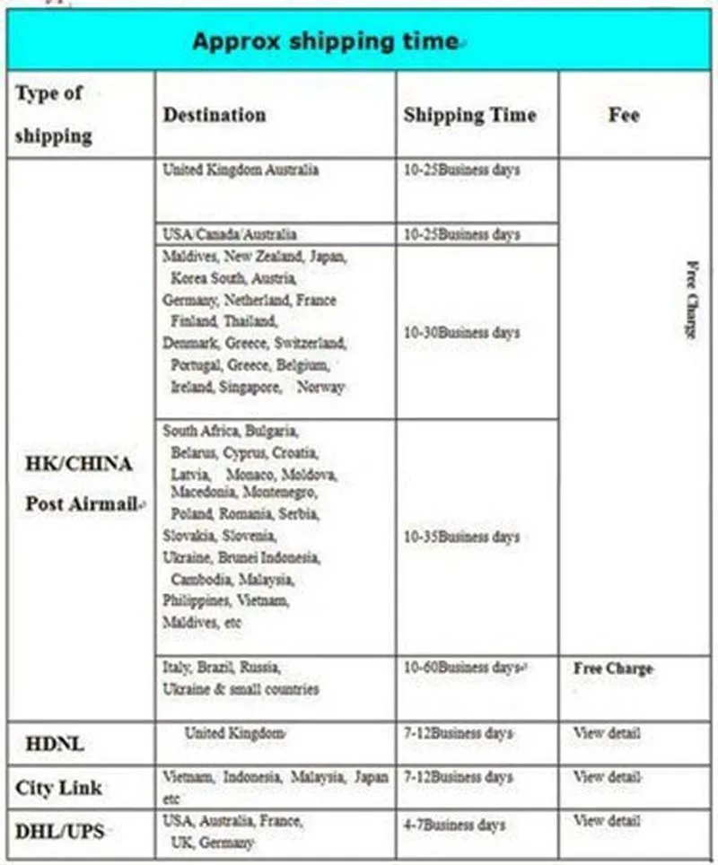 1) доставка по всему миру. (ожидается, что некоторые страны и APO/FPO)
