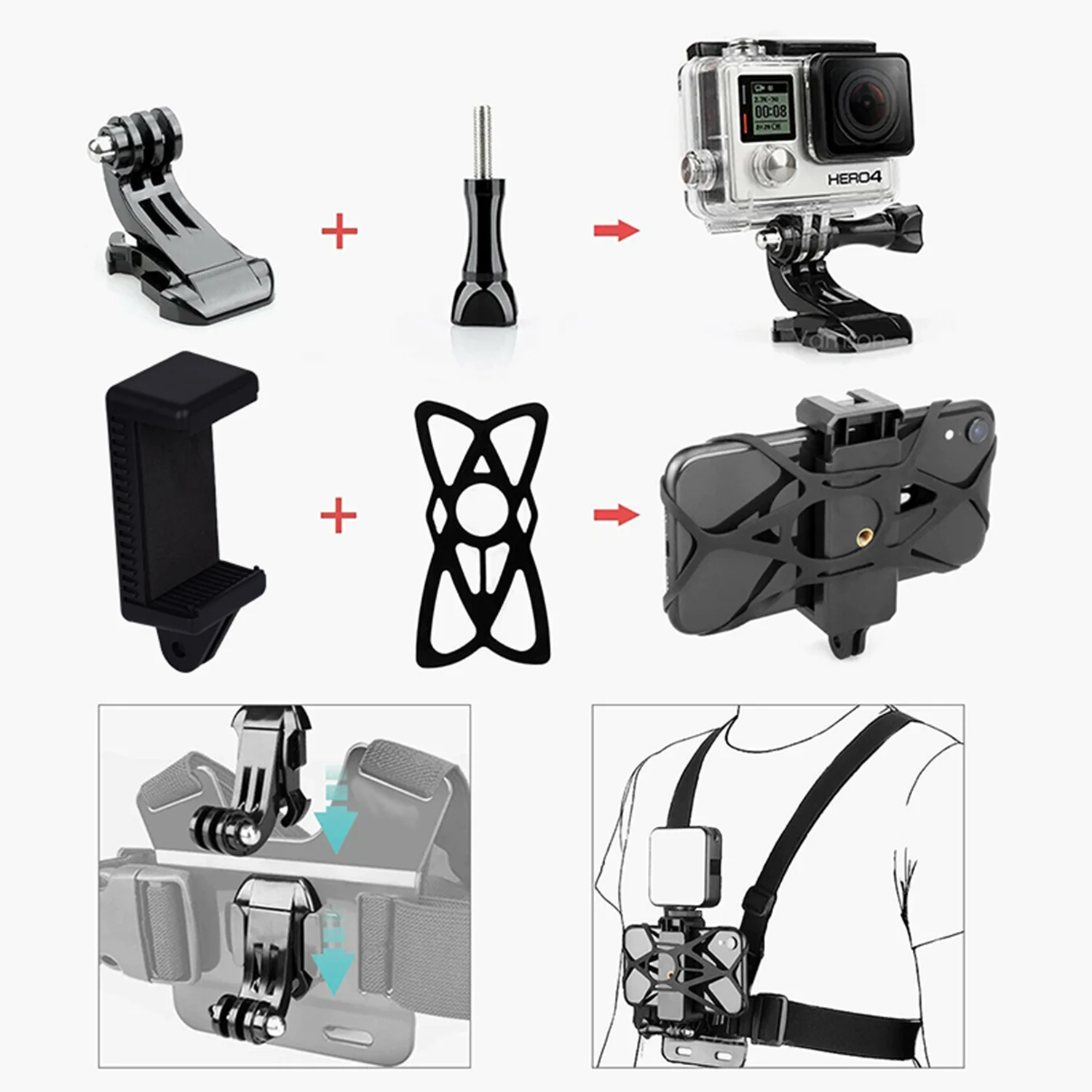 Простой в использовании, работает с любой моделью смартфона, может использоваться как чехол, так и водонепроницаемый чехол. Продукт позволяет легко снимать видео без рук с телефона практически во время любой деятельности.