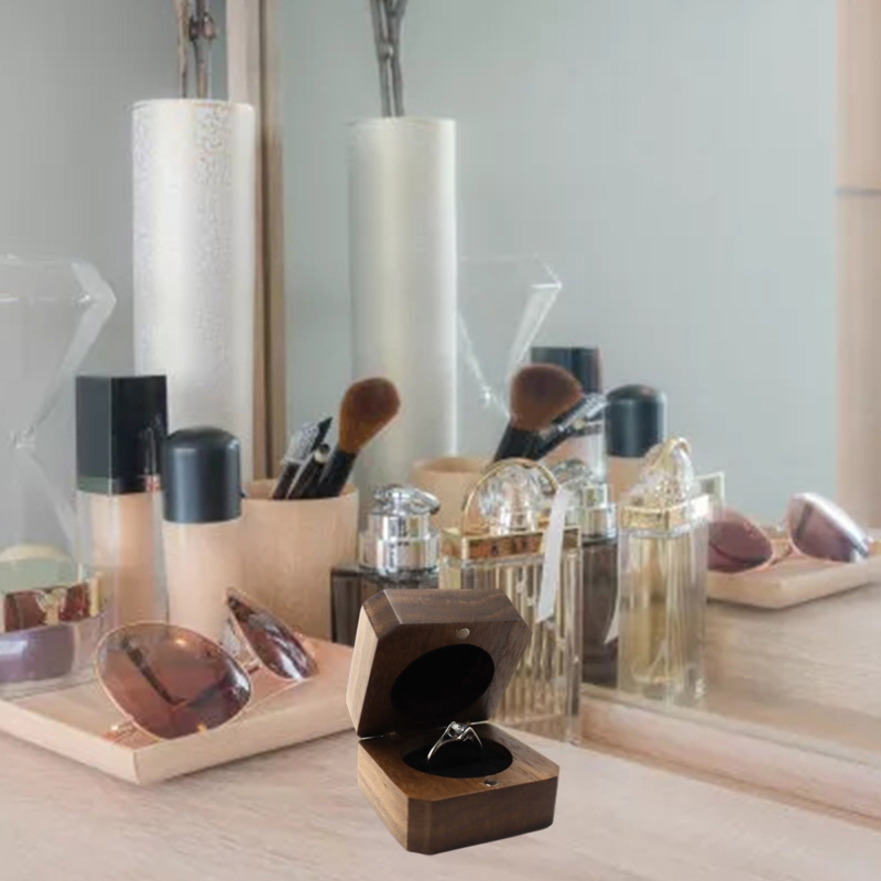 Деревянные кольца/серьги коробка ювелирных изделий отлично подходит для личного использования дома, сидит вручную на любой тумбочке, стол, комод, ящик или счетчик, а также идеально подходит для Дорожный органайзер для бижутерии или ювелирной выставки.