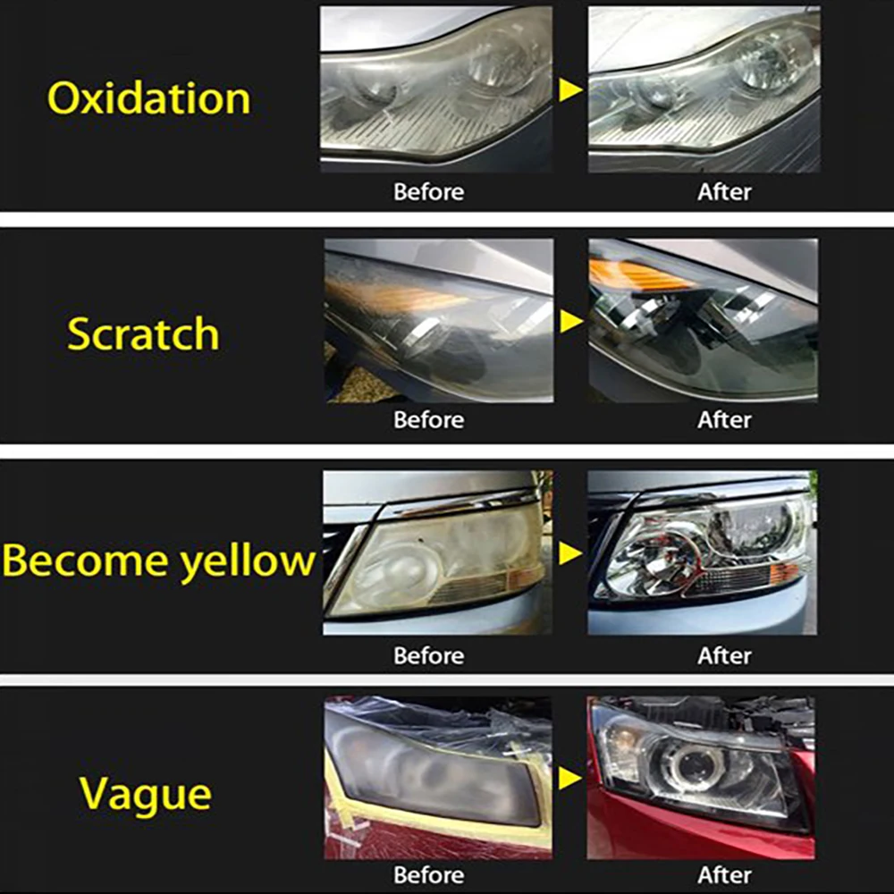 Обеспечивает профессиональные результаты на желтый, окисленный, треснутый, размытый, светильник-поцарапанный головной светильник s, повышает видимость и безопасность для ночного вождения.