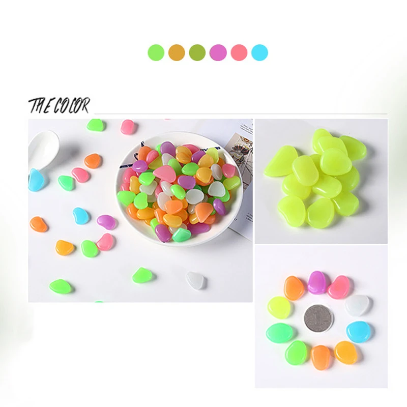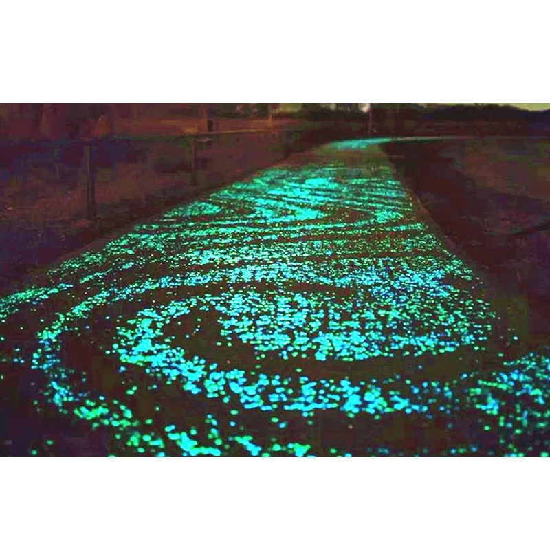 О: светящиеся камни светятся в белом цвете, таких как ярко-желтый, зеленый, синий и зеленый. Другие цвета окрашены желто-зеленым порошком и цветным порошком. Тонер покрывает светящийся порошок.После сильного дневного света с 3 часами, эти гальки могут быть освещены в течение 1-2 часов в темноте.
