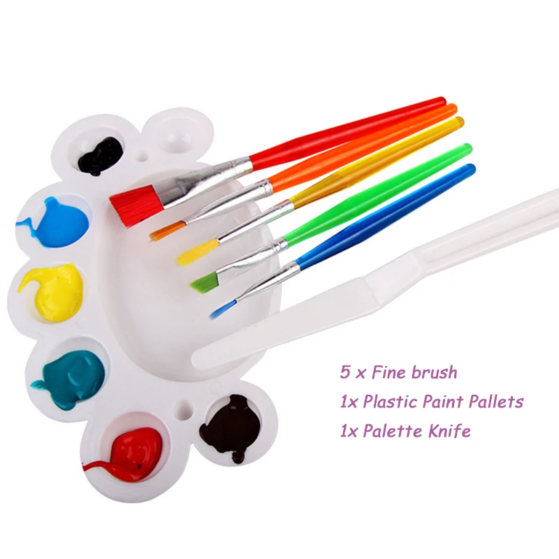 Детские кисти для рисования, Детские Игрушки для раннего обучения, 5 тонких кистей, 1 пластиковые паллеты для рисования, 1 палитра, нож, товары для искусства
