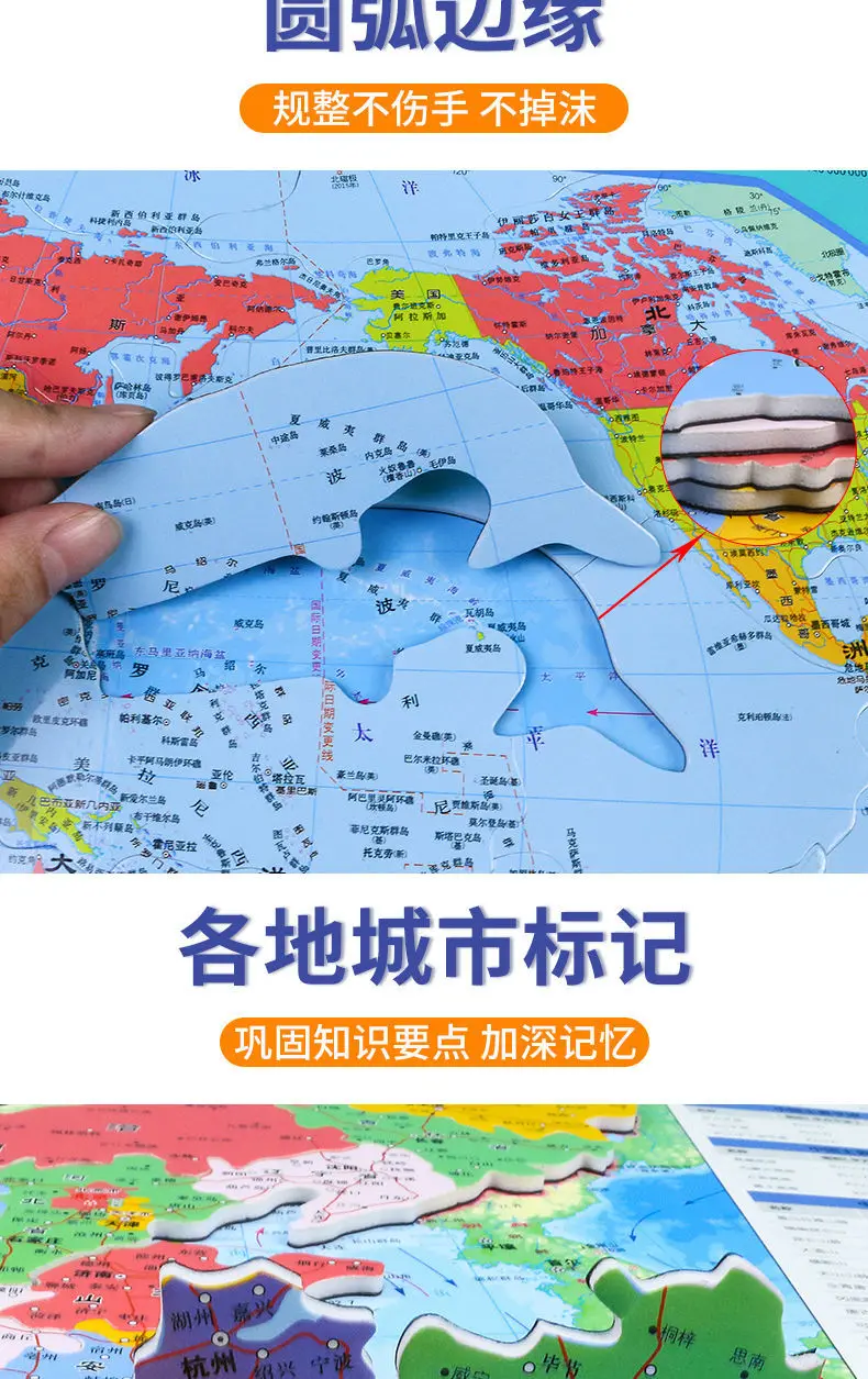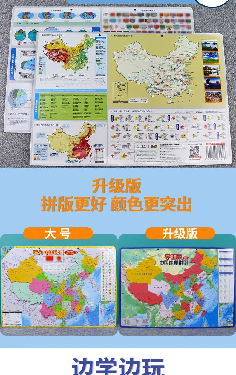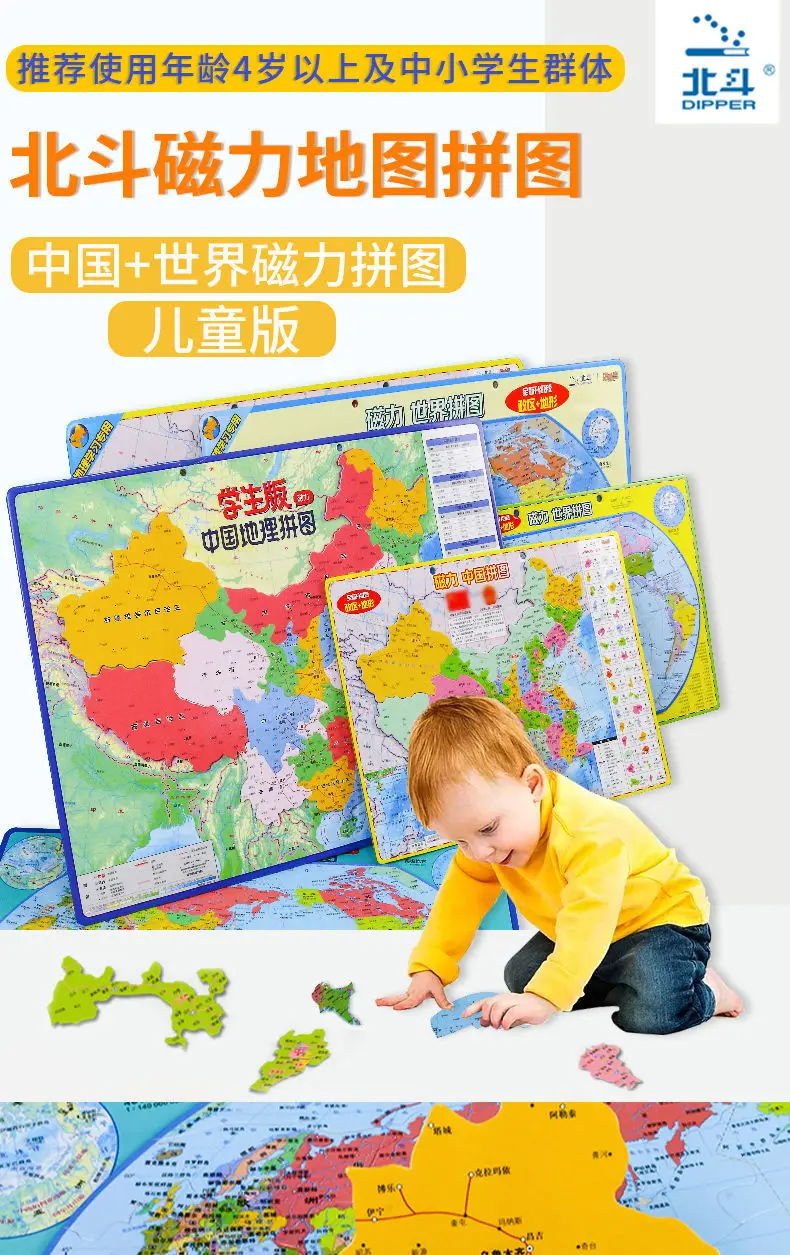 Китайская карта, детская серия, настенная диаграмма, магнитная головоломка, пазл, мультяшная карта мира, детская серия, большая картина