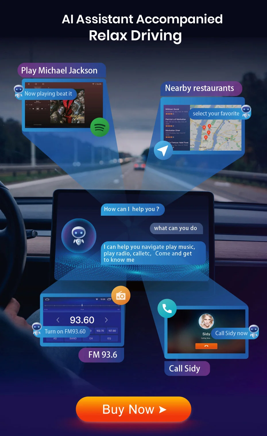 Вы можете управлять автомобильным радио, говоря несколько слов, это поймет ваш смысл и осуществит его. Эта функция является необязательной и управляется предварительно установленным приложением, вам нужно купить функцию, чтобы использовать ее. Нажмите на картинку ниже, чтобы купить.