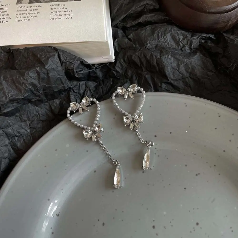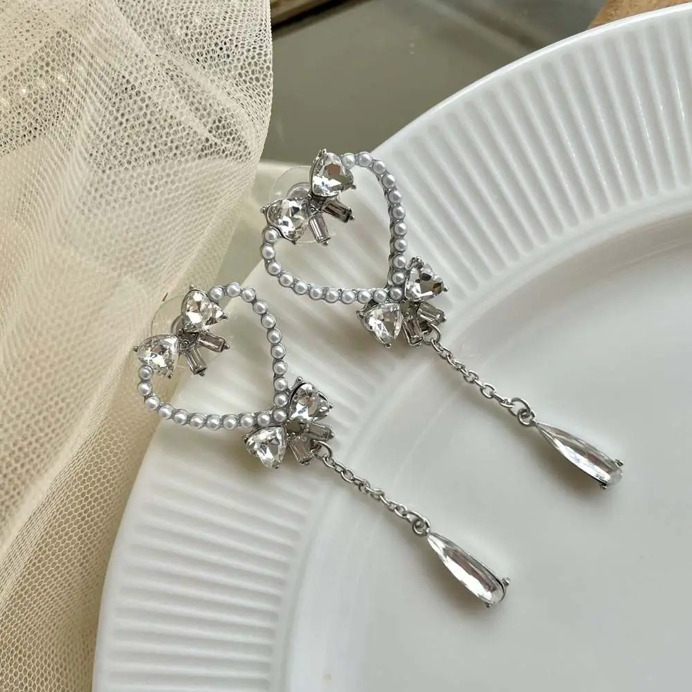 Тип изделия: висячие серьги Материал: Сплав Цвет: серебристый Размер: 7*2 см Пол: Женский Стиль: Модный Повод: Свадьба, вечерние, подарок, день рождения, повседневная одежда тип Серьги: серьги с сердечками в комплекте: 1 пара висячих сережек