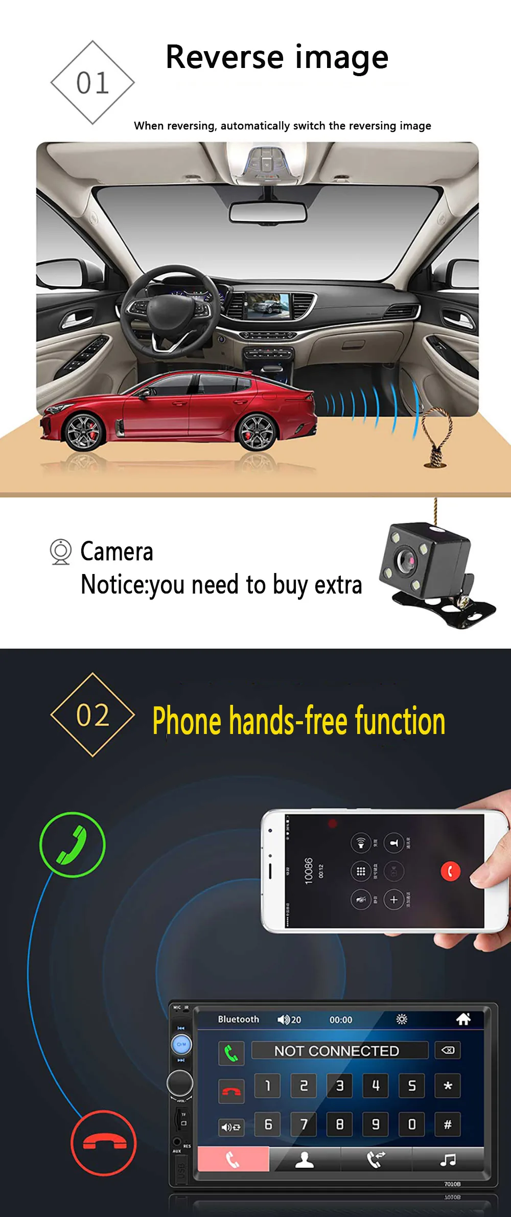 Посылка: 1 x 7018B сенсорный экран MP5 плеер, 1 x пульт дистанционного управления, 2 x кабель питания, 1 x руководство пользователя на английском языке