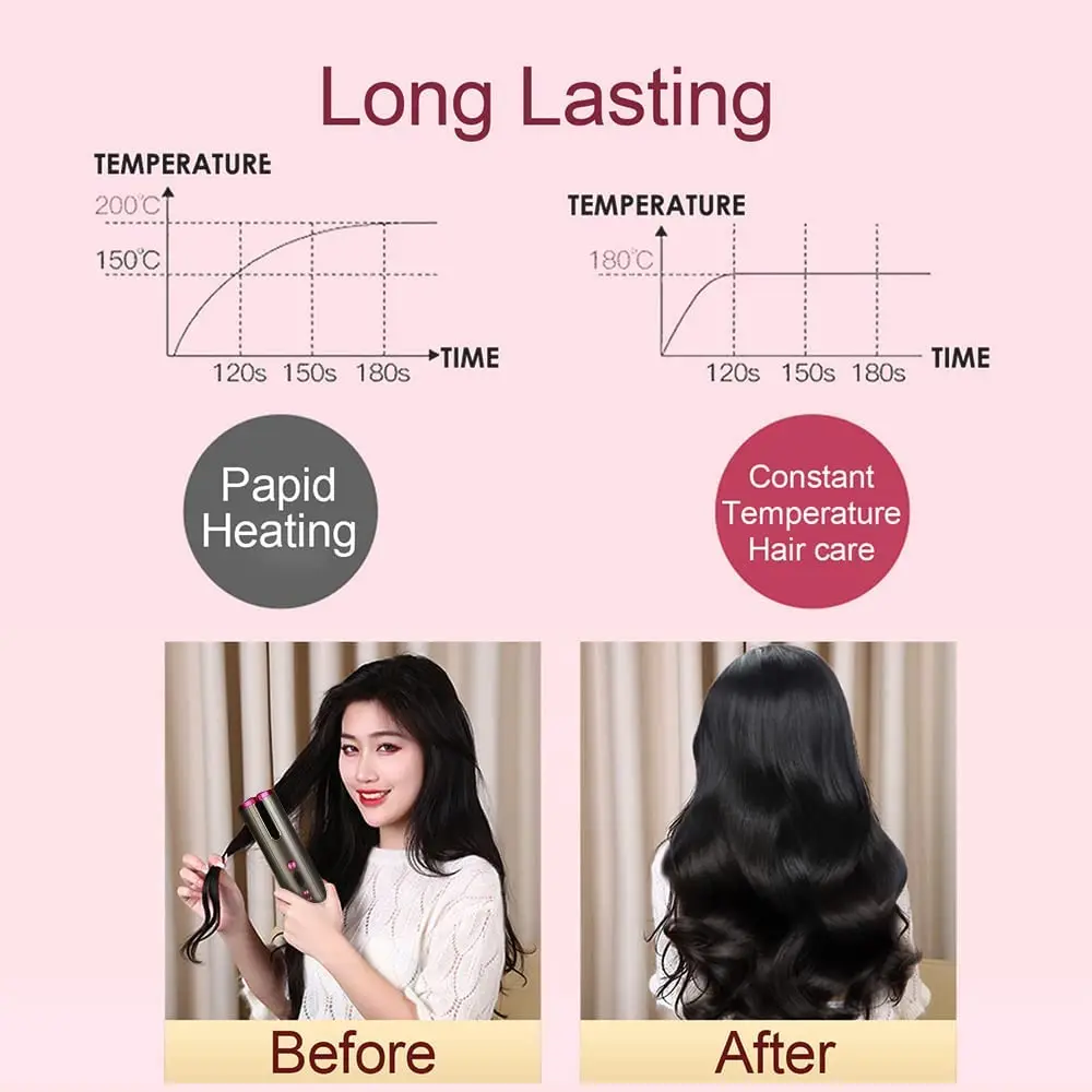 2. Это беспроводное автоматическое щипцы для завивки принимает автоматическую завивку вращения и антиприжимную конструкцию, чтобы помочь вам создать красивые локоны одним касанием.